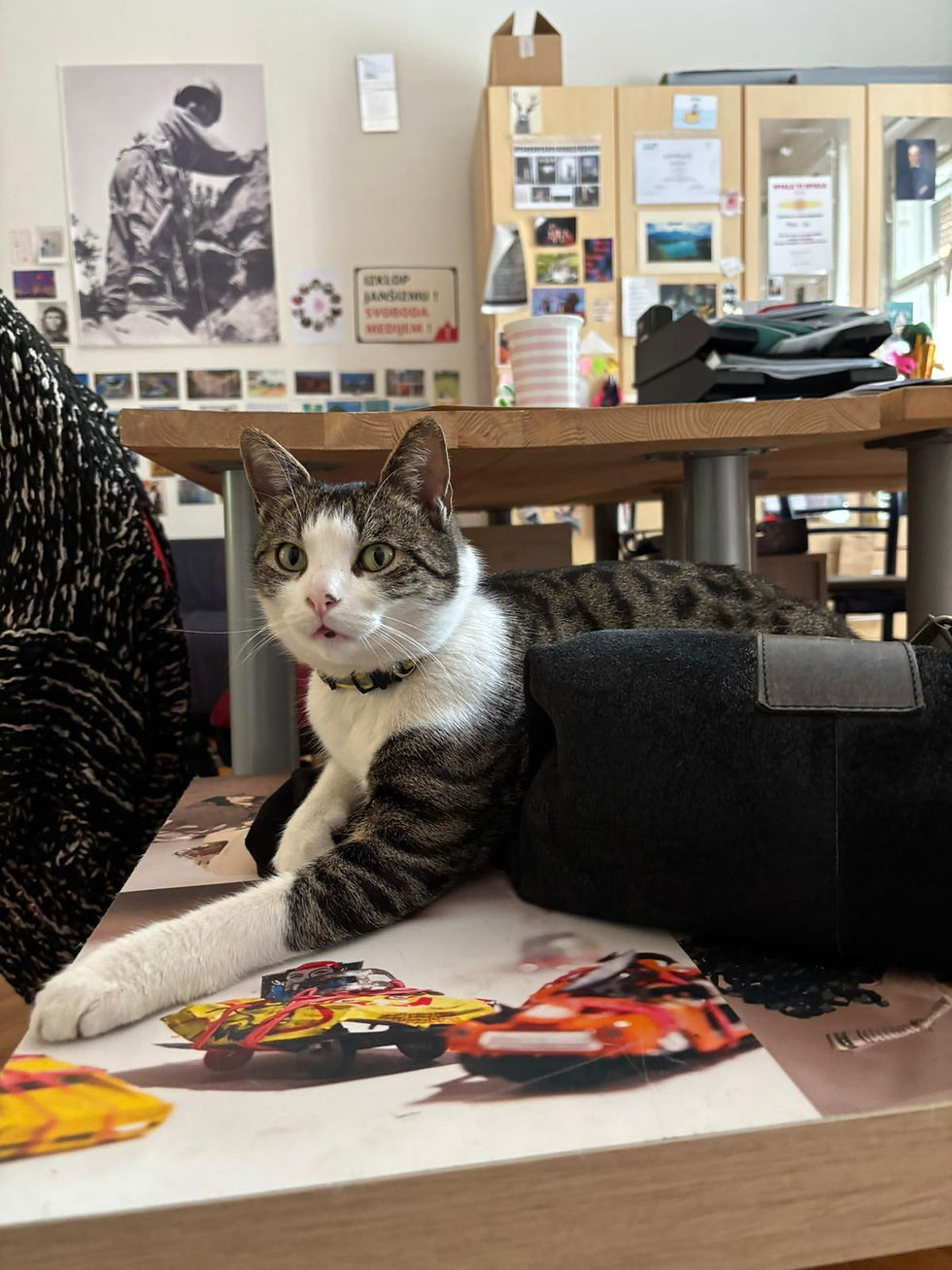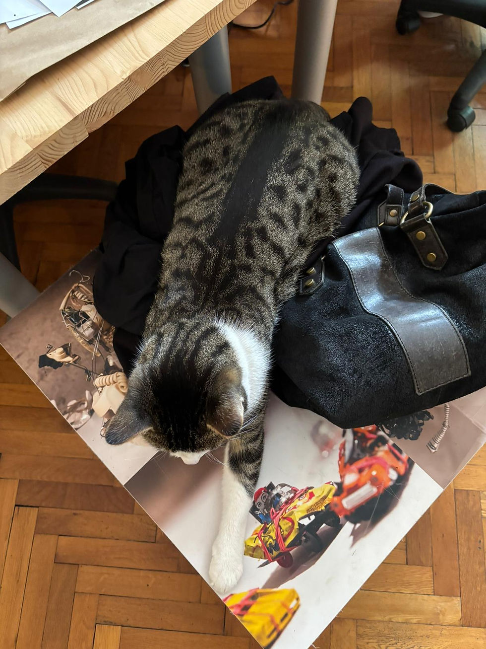 22. 4. 2026, včasih se ne da delat, včasih pa se ne da it domov, ker mucek spi na torbici
